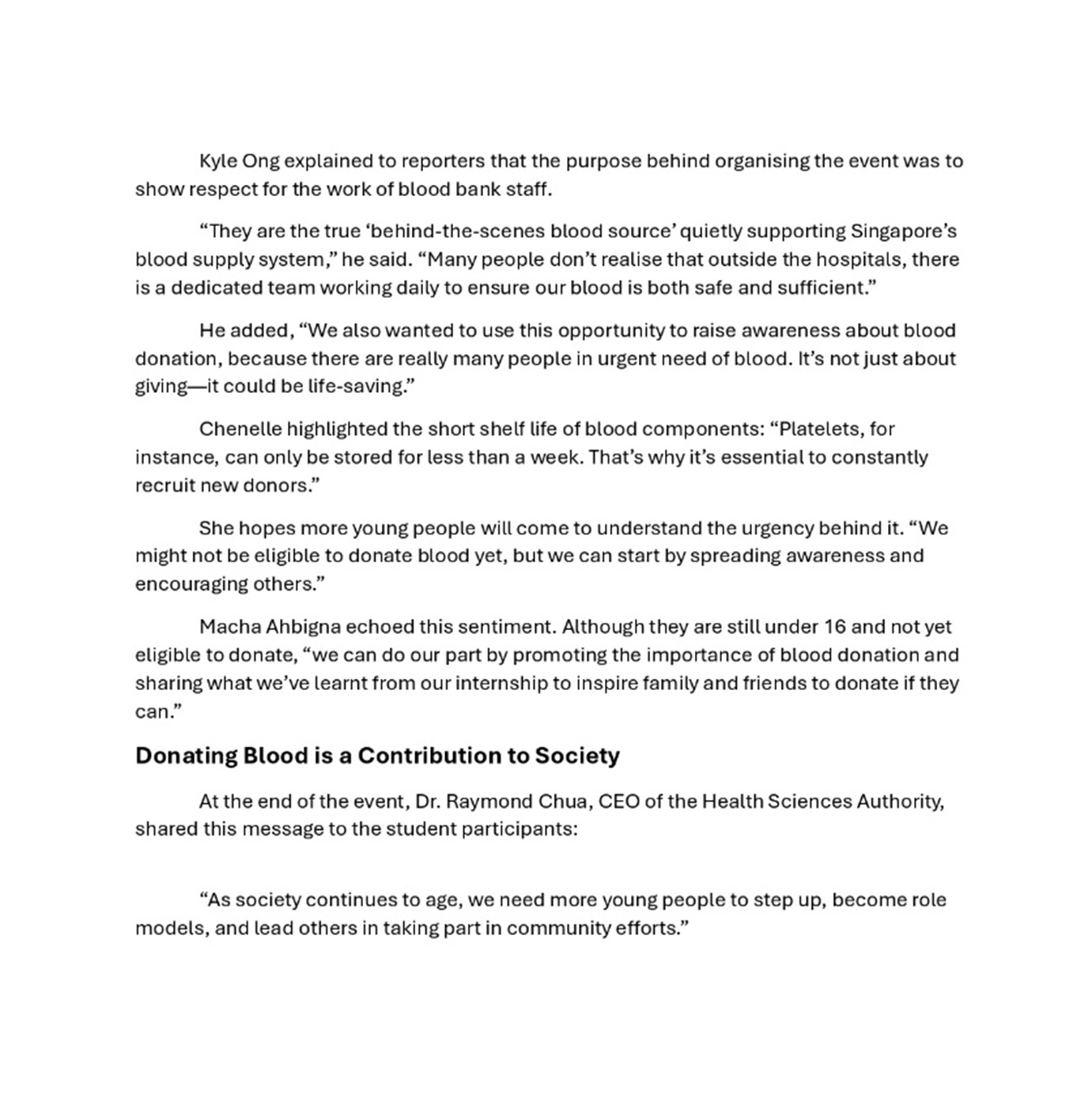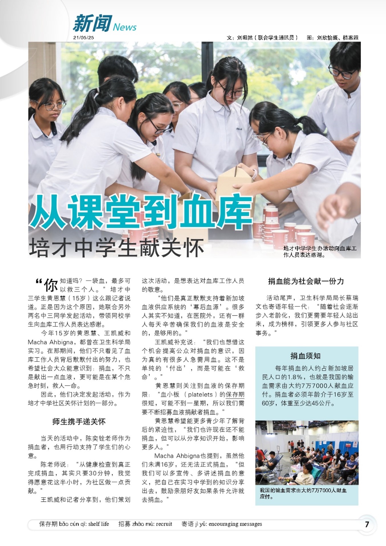 Zaobao Schools Article (21 May 2025) on Peicai’s Signature Outreach VIA to Blood Bank (https://www.zbschools.sg/article/detail/2025000602) |
