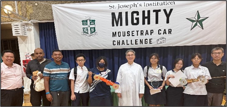 Two teams of Sec 3 D&T students participated for the first time in this year’s Mighty Mousetrap Car Challenge – Challenge on 2 July 2025 —a prestigious STEM competition hosted by SJI for the second consecutive year.