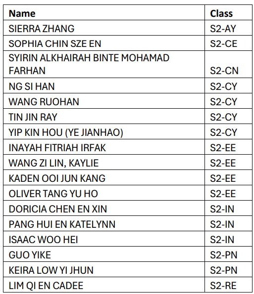 Secondary 2 Principal’s List