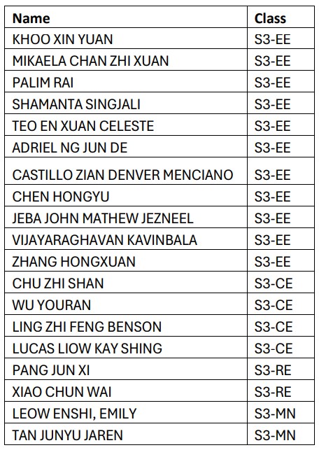 Secondary 3 Principal’s List