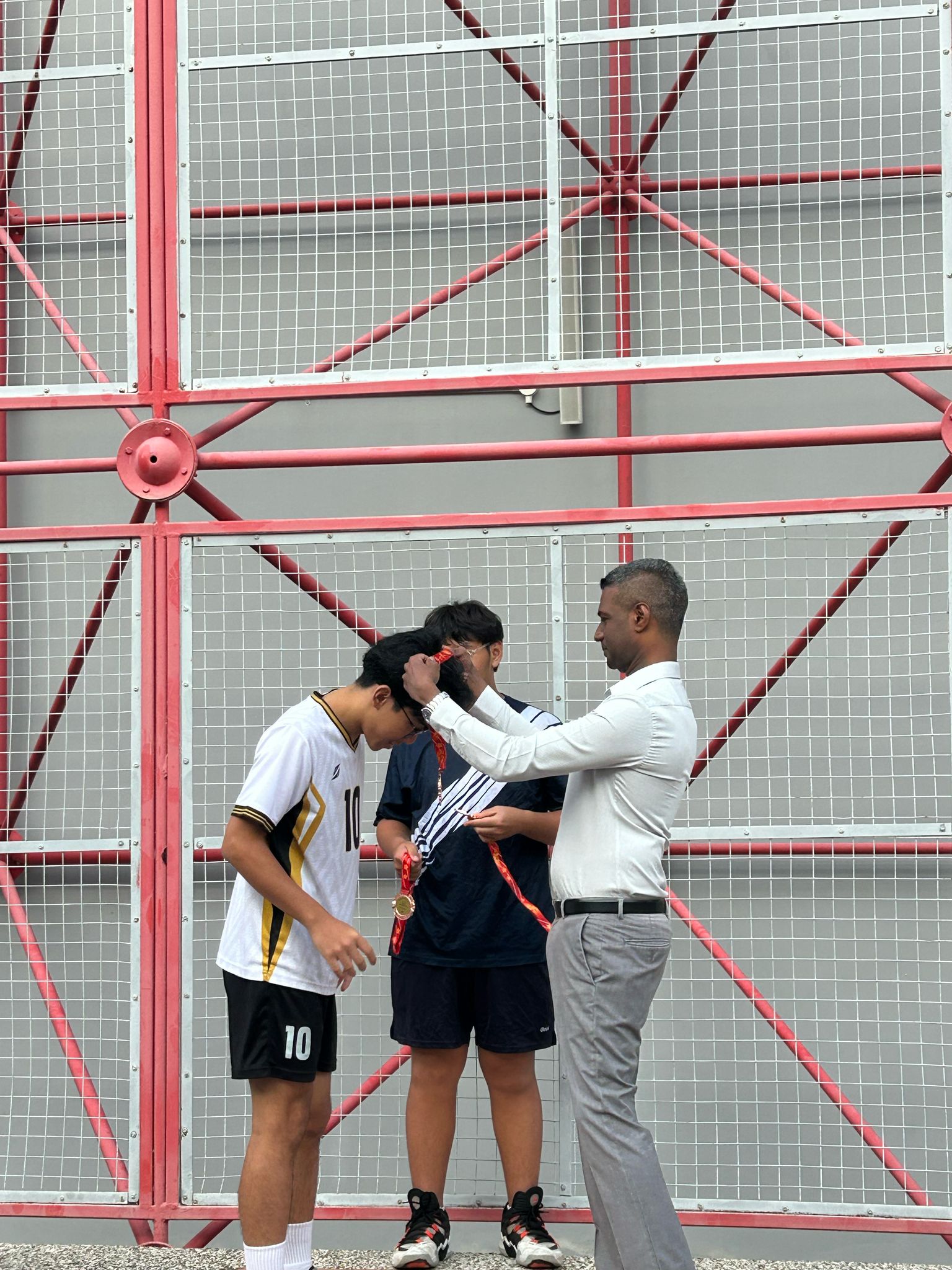 Medal presentation ceremony with our Principal, Mr Michael and the teachers. |