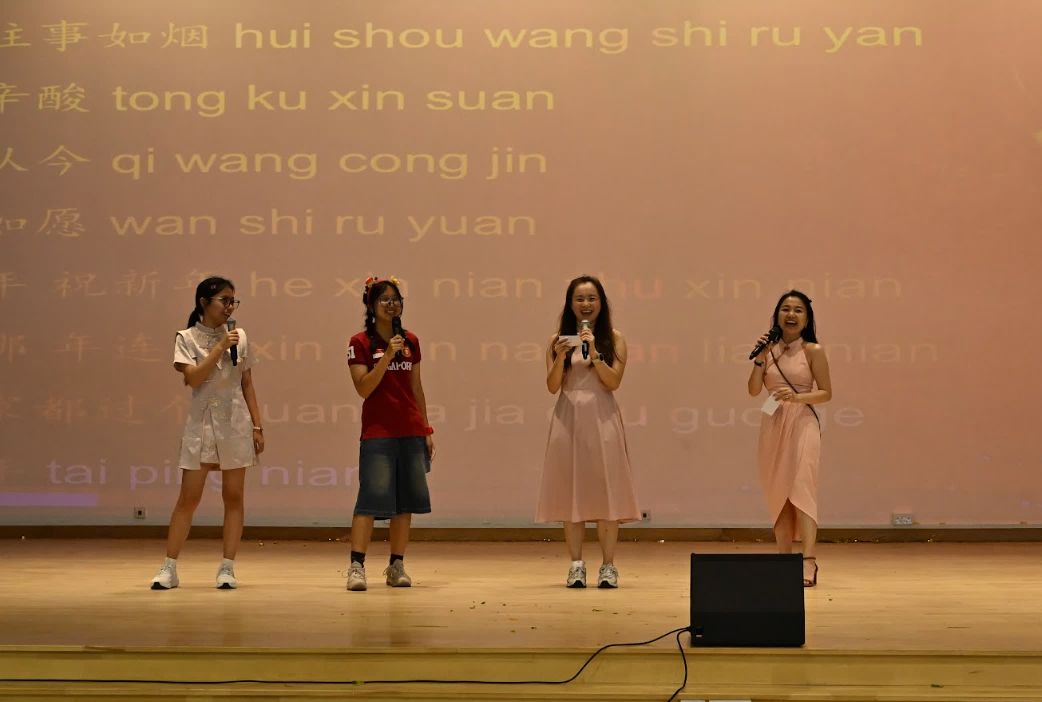 Mr Tan Yan Chong, Mr Tau Jun Hui, 2 students, Ms Zhang Chuyi and Ms Fu Huihui singing CNY songs to end the concert. |