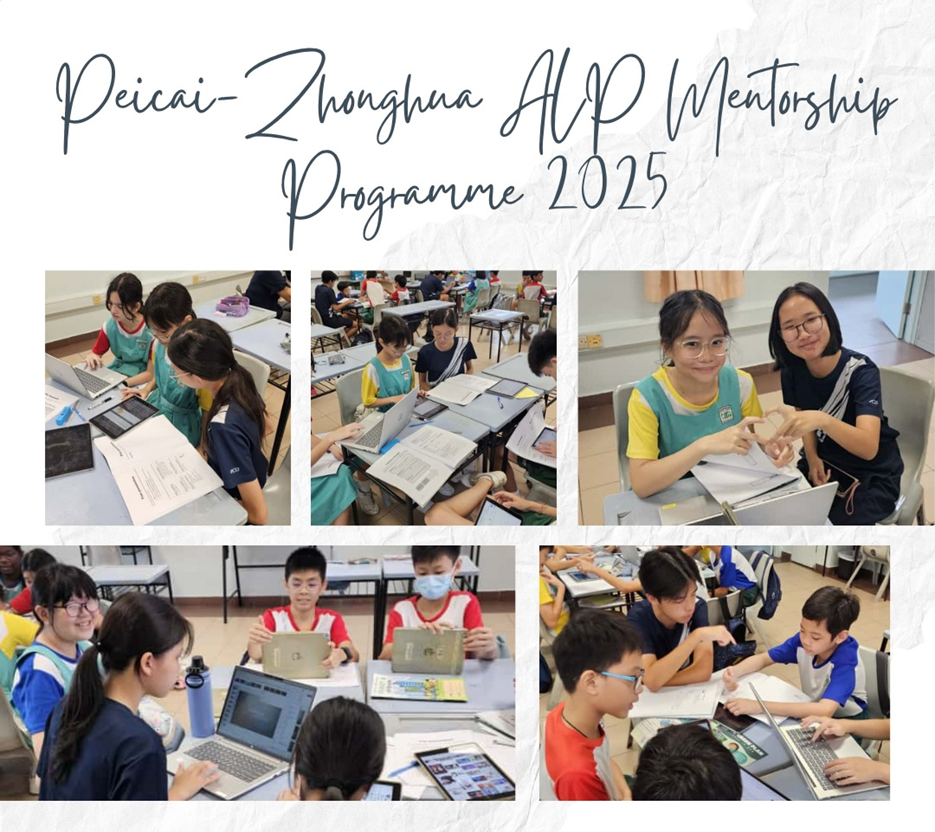A select group of 28 Secondary 2 students from Peicai Secondary School teamed up with Primary 6 pupils from Zhonghua Primary School in the Peicai–Zhonghua ALP Mentorship Programme. The interschool partnership empowers our students to take on mentorship roles, guiding their younger peers in using digital tools to address real-world challenges.