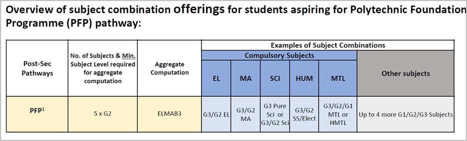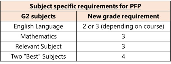 Students offering G3 subjects, or a mix of G2 and G3 subjects will be allowed to access PFP. There will be no further change to the admissions criteria.