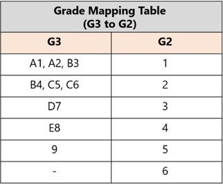 Students who offer both [B] subjects at G3 will have the [B] subject with a lower grade mapped from G3 to G2 based on a grade mapping table.