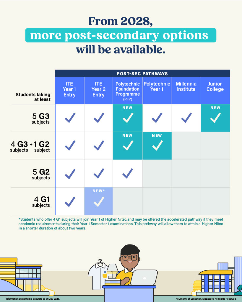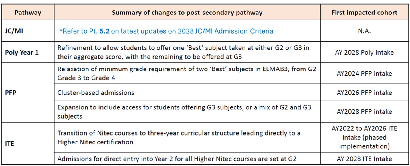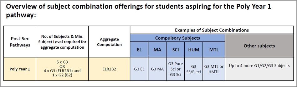From 2028, one ‘Best’ [B] subject can be fulfilled at G2 or G3 as part of the aggregate score for admission to Polytechnic Year 1