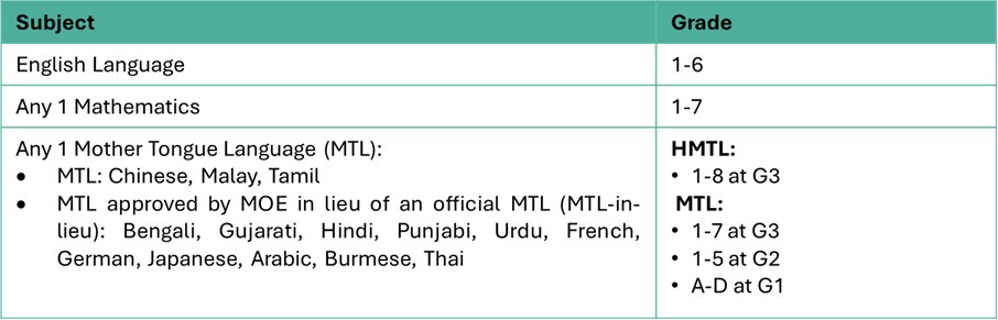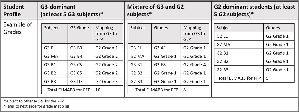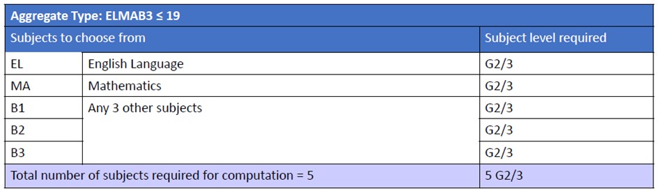 For the ELMAB3 admission criteria, the minimum grade requirement of two ‘Best’ subjects has been relaxed from G2 Grade 3 to Grade 4
