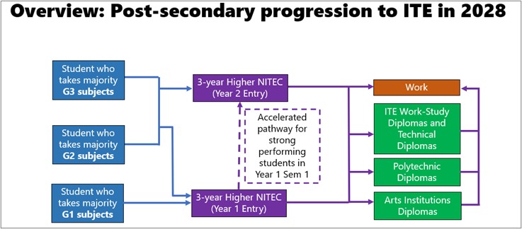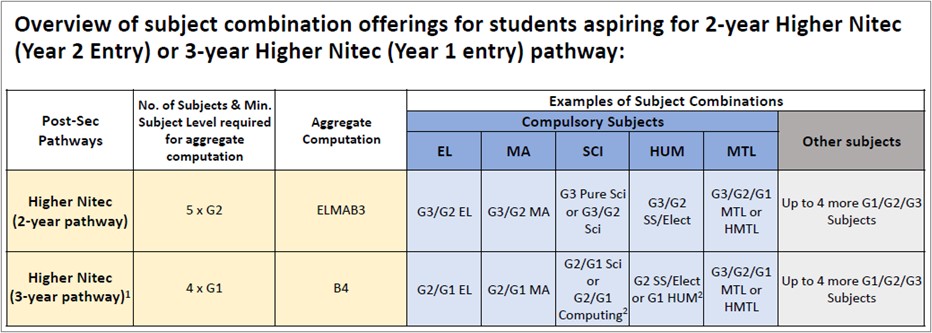 With the removal of stream labels under Full SBB, admission requirements for direct entry into Year 2 for all Higher NITEC courses will be set at G2 from 2027 S4 cohort (i.e. AY2028 ITE intake).