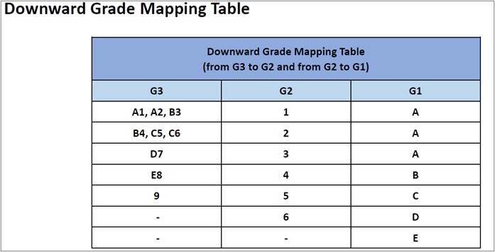 Note: This mapping process is known as downward grade mapping, as G3 grades are mapped down to G2 grades, and G2 grades are mapped down to G1 grades.