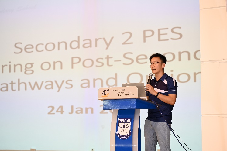 Mr Edwin Qwek sharing the Post Secondary Pathways during the Secondary 2 PES |